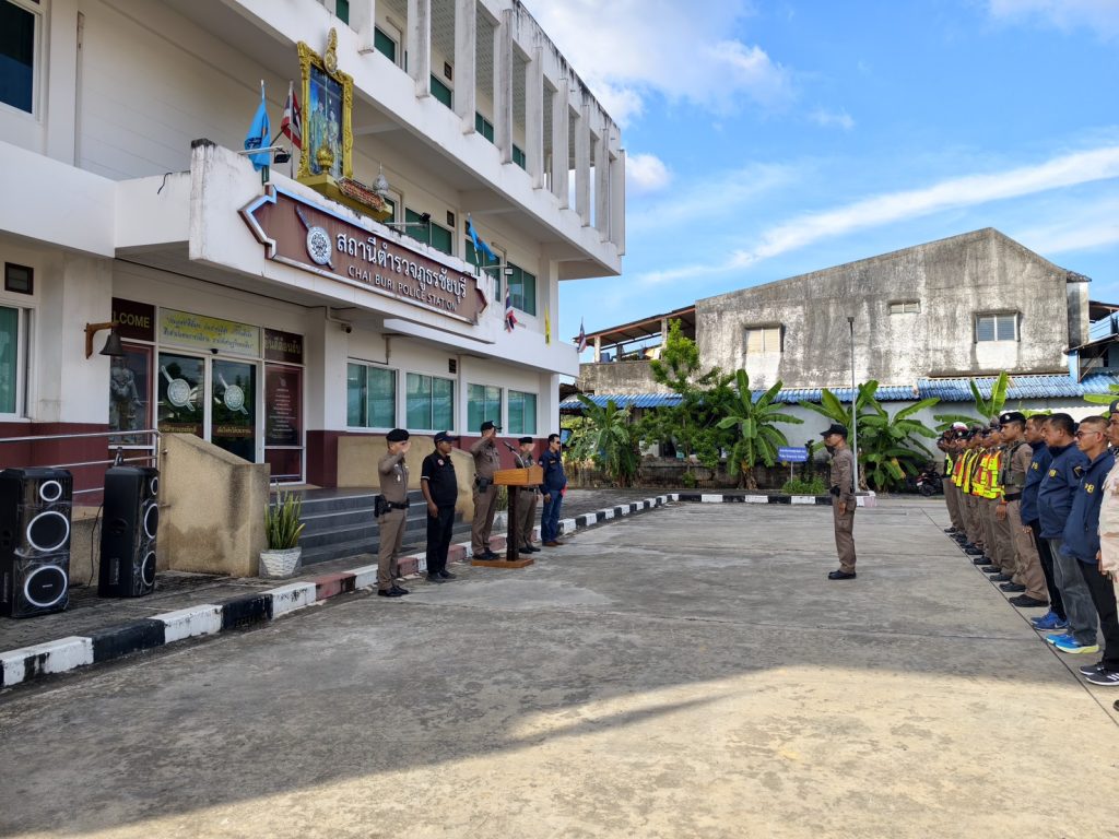 พร้อมข้าราชการตำรวจ สภ.ชัยบุรี และฝ่ายปกครองชัยบุรี ได้ร่วมพิธีปล่อยแถวระดมกวาดล้างอาชญากรรม ในช่วงก่อนวันคริสต์มาส และเทศกาลปีใหม่ 2569 ตั้งแต่ วันที่ 17 – 25 ธันวาคม 2568 เพื่อป้องกันและปราบปรามอาชญากรรม การรักษาความสงบเรียบร้อย การบังคับใช้กฎหมาย และอำนวยความสะดวกด้านการจราจร ณ บริเวณหน้าสถานีตำรวจภูธรชัยบุรี อ.ชัยบุรี จ.สุราษฎร์ธานี