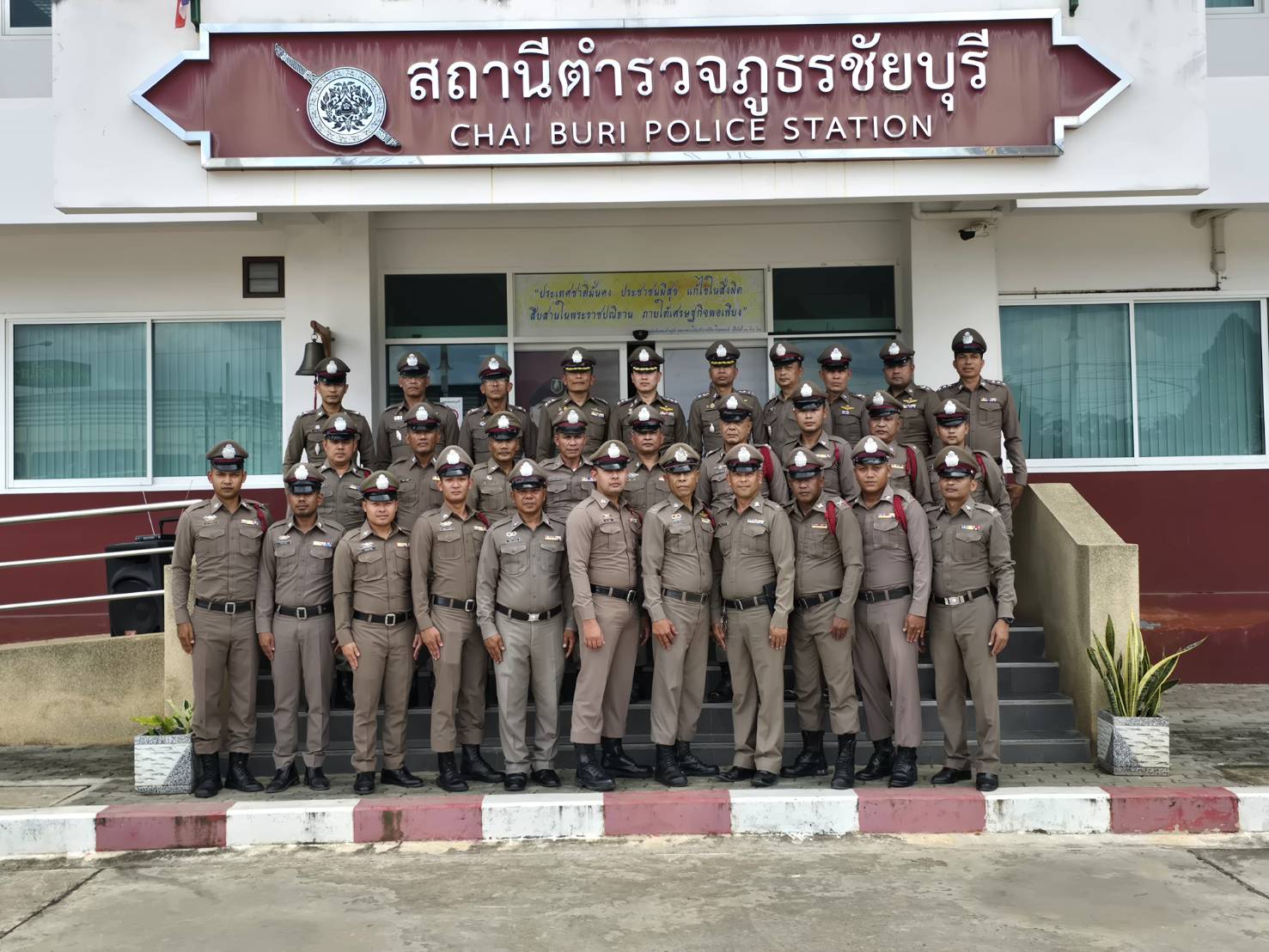 พ.ต.อ.ศุภกิจ ประยูรบุตร ผกก.สภ.ชัยบุรี ได้นำข้าราชการตำรวจทุกนายในสังกัด เข้าร่วมพิธีถวายสัตย์ปฏิญาณ