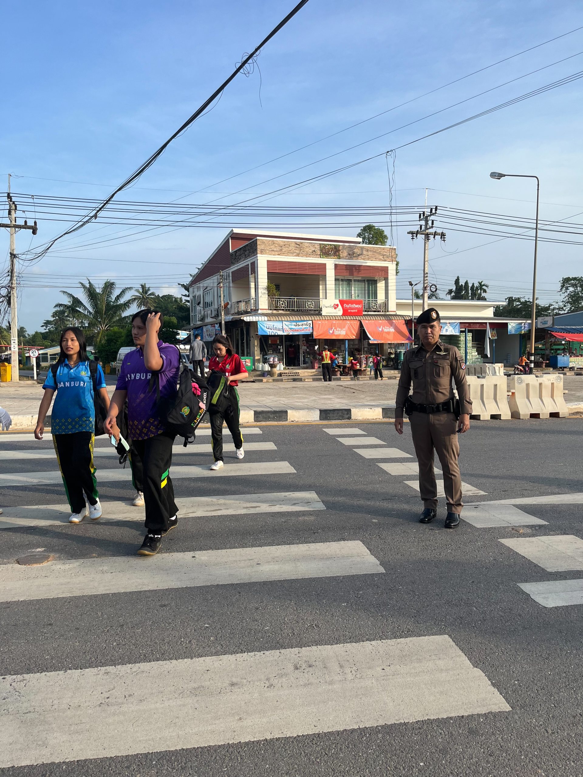 ดูแล อำนวยการจราจรเด็กนักเรียนโรงเรียนวัดสมัยสุวรรณ